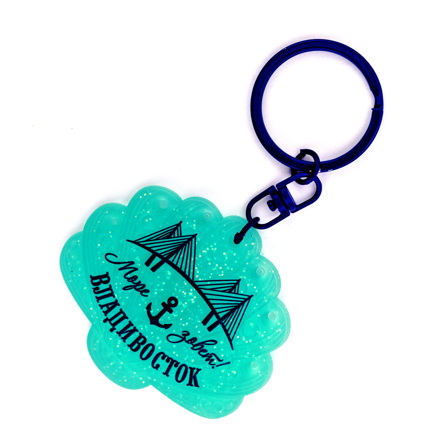 Брелок с ПВХ подвеской ВЛАДИВОСТОК МОРЕ ЗОВЕТ бирюзово-синий. Материал: кольцо металлическое синее , мягкий ПВХ. Размер: 8,5хсм. Упаковка: ПП пакет.