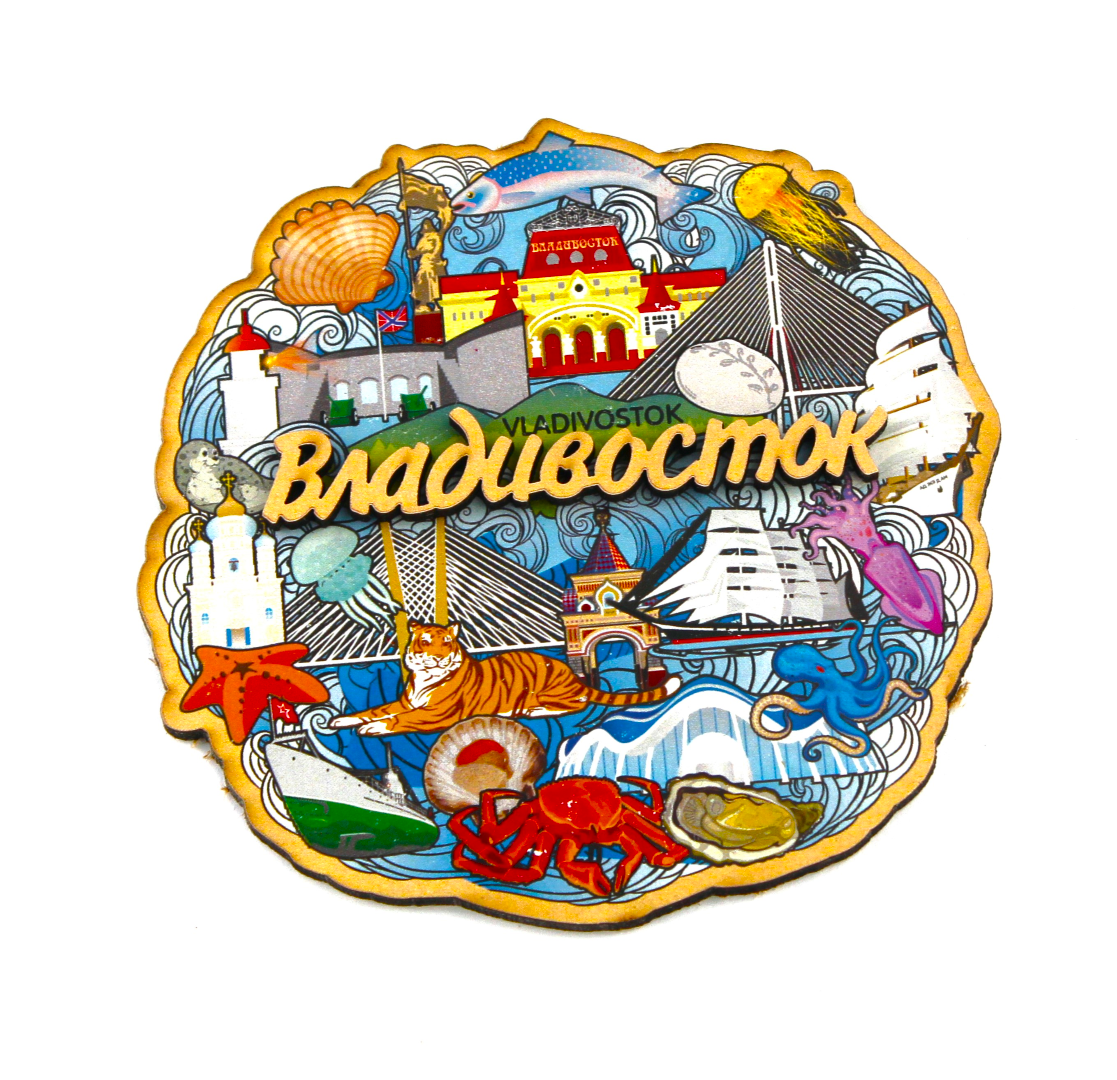 Магнит деревянный 2-слойный Владивосток Графика. Размер: 9х9х0.5 см. Материал: ДВП, бумага. Упаковка: ПП пакет.