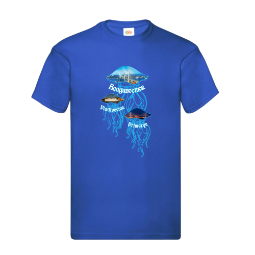 Футболка с полноцветной печатью унисекс ВЛАДИВОСТОК МЕДУЗЫ. Цвета: синий, желтый, белый, красный, бежевый, зеленый, черный. Размеры: 48, 50, 52, 54, 56. Материал: 100% хлопок. Упаковка ПП пакет.
