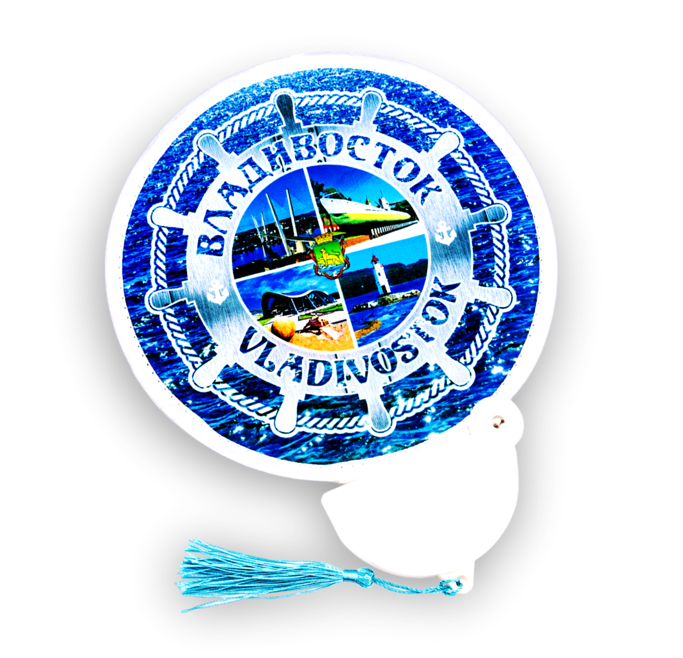 Веер складной в пластиковом кармане с кисточкой ВЛАДИВОСТОК ШТУРВАЛ. Размер в сложенном виде 9х9 см, в расправленно 23х23 см. Материал: полиэстер, платстик. Упаковка ПП пакет.