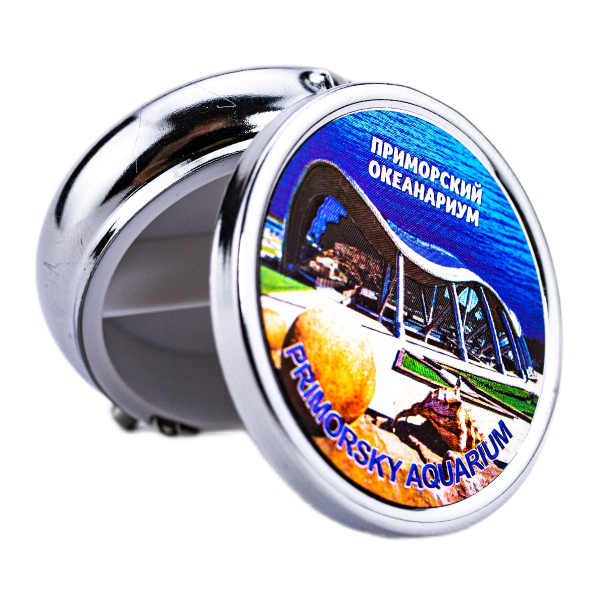 Таблетница с полноцветным тисненным изображением на крышке Океанариум. Материал: металл, пластик. Размер 50х50х1,7 мм. Упаковка: ПП пакет.