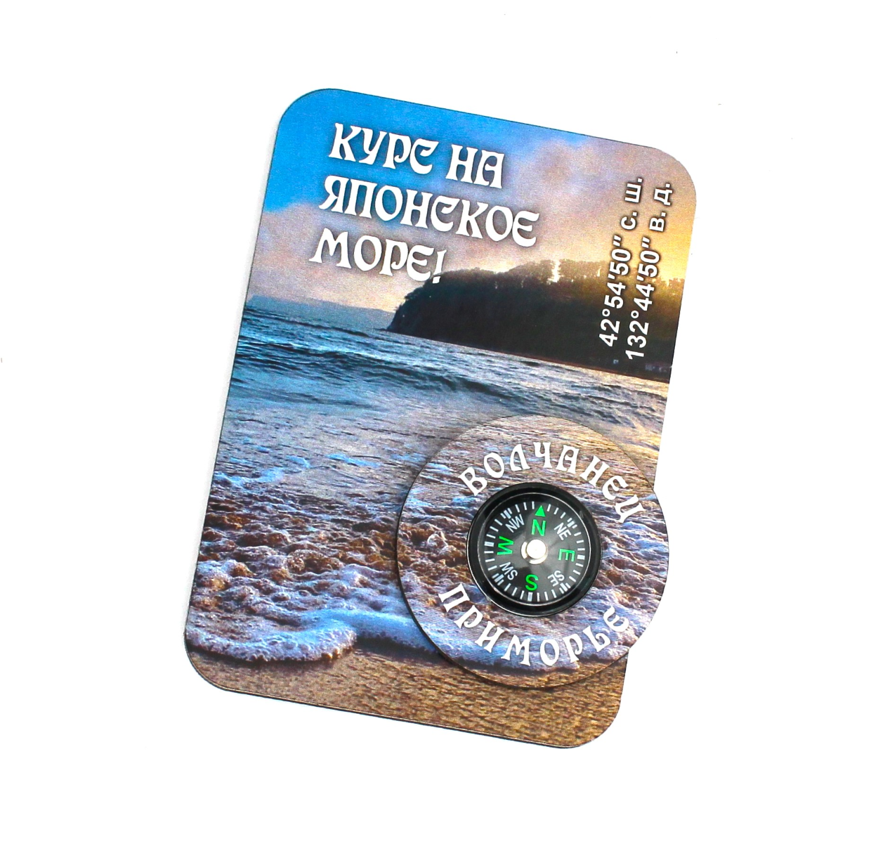 Магнит деревянный 2-слойный с компасом Волчанец Закат. Материал: ДВП, бумага, пластик. Размер 9.5х7х 0.8 см. Упаковка: ПП пакет.
