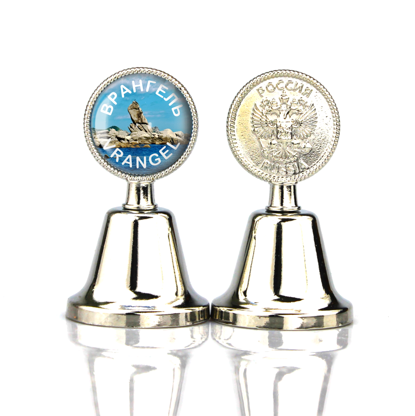 Колокольчик сувенирный с эпоксидной смолой Врангель Скала. Размер: 4.5х4.5х8 см. Материал: металл, эпоксидная смола. Упаковка: белая картонная коробка.