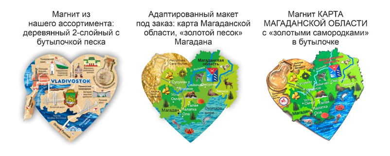 Производство под заказ – это изготовление продукции согласно пожеланиям и интересам конкретного клиента, умноженные на опыт производителя. С 2004 года мы произвели миллионы сувениров под заказ! И каждый год все клиенты повторяют тиражи «старых» продуктов и заказывают новинки. Мы всегда готовы воплотить идеи заказчика, применяя весь огромный опыт и мастерство. Иногда нам присылают фото увиденных сувениров из известных туристических мест и мы с удовольствием делаем такие же и даже лучше для продвижения местных объектов туристической отрасли. Среди наших постоянных заказчиков Приморский Океанариум, Национальный парк «Земля леопарда», Всероссийский детский центр «Океан», Музей истории Дальнего Востока имени В.К. Арсеньева, Музей автомотостарины на Садгороде, Дельфинарий «ОКЕАН», Отель «Азимут», Морская ферма в бухте Воевода, База отдыха «Комета», Приморский Сафари-парк, Зоопарк «Чудесный» в Уссурийске, МБУК «Уссурийский музей», гостиничный комплекс «Теплое море» в Славянке, туристические базы и магазины в поселках Волчанец, Врангель, Ольга, Безверхово, Андреевка, Ливадия, магазины в Хабаровске, Комсомольске-на-Амуре, Магадане, Южно-Сахалинске, Петропавловске-Камчатском, Благовещенске, Белогорске, Чите, Лесозаводске, Большой Камень, Прогулочные теплоходы в Хабаровске.